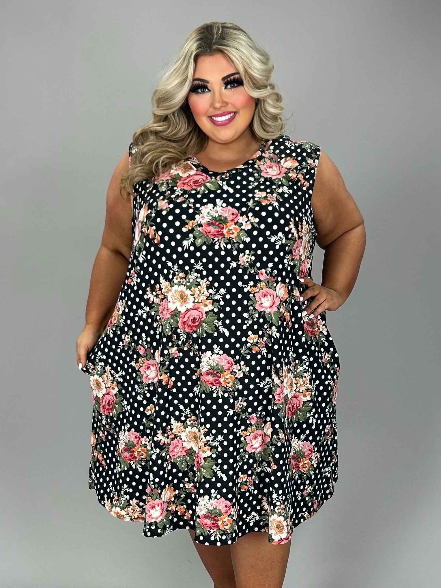 33 SV {Dotted Garden} Black Polka Dot Floral V-Neck Dress EXTENDED PLUS SIZE 4X 5X 6X
