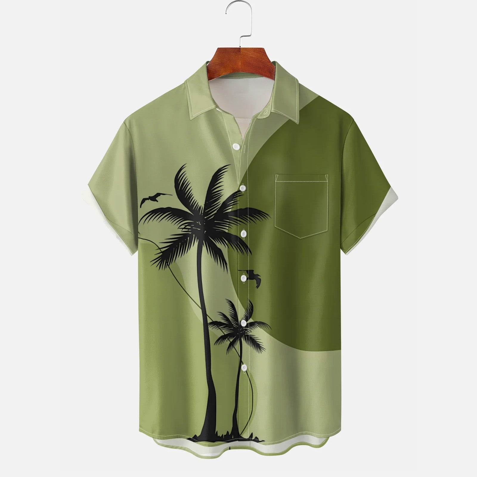 Coconut Tree Chest Pocket Casual Hawaiian Shirt