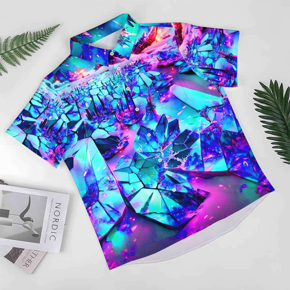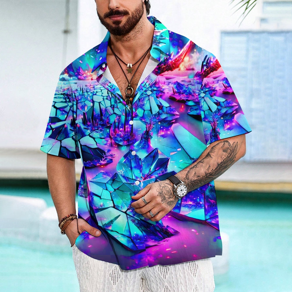 Geometric Gradient Button Pocket Casual Short Sleeve Shirt 2412007767